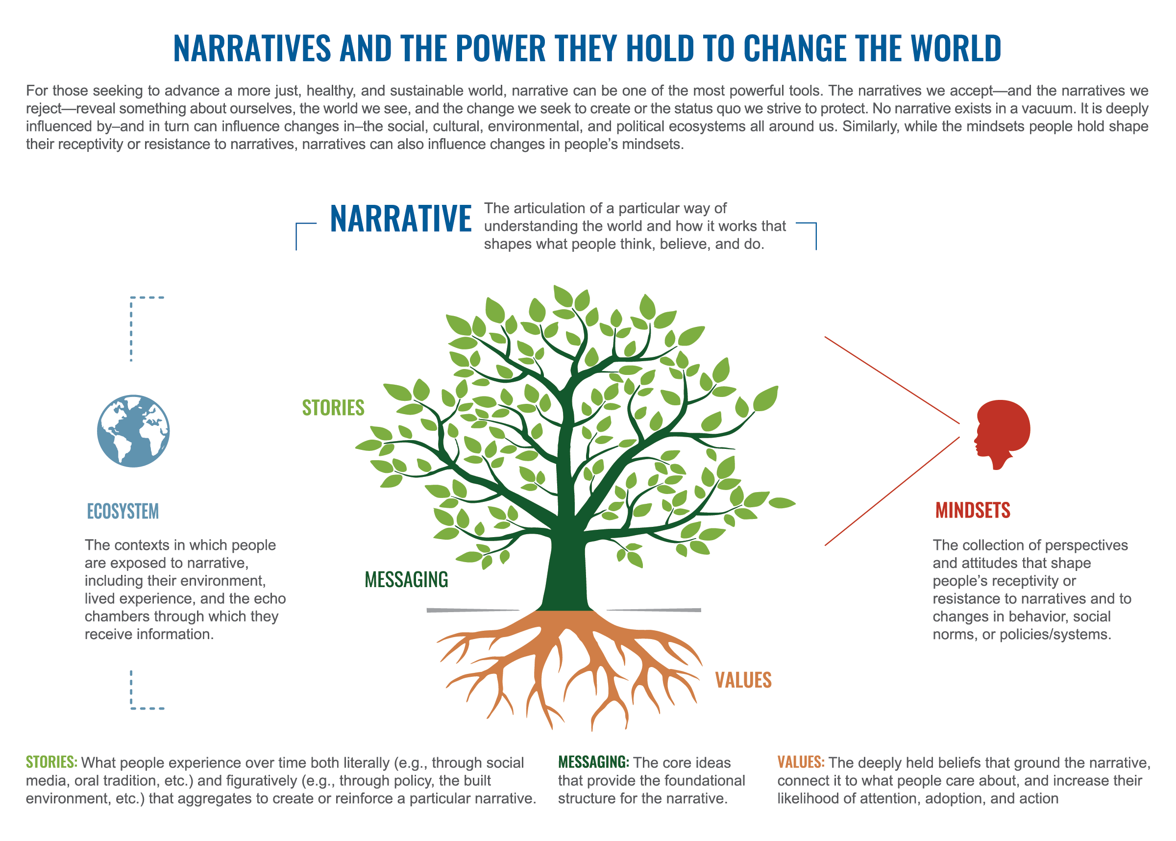 - Explore the elements of the new narrative—values, messages, and stories. Learn about the audiences most open to shifting their views.